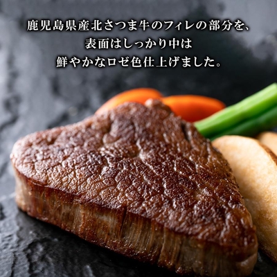 ・フィレステーキ 鹿児島県産北さつま牛のフィレの部分を、表面はしっかり中は鮮やかなロゼ色仕上げました。お家でもお店で味わうような本格的さを追求し、独自に研究を重ねていきました。肉質のきめが細かく、融点も低いため、舌の上で溶けるような軟らかさがあり、旨味が凝縮された逸品となっています。 内容量:190g ( 固形量:140g) x 1個 原材料名:牛肉(北さつま牛)、いんげん豆、じゃがいも、人参、ステーキ調味(塩、胡椒)、ステーキソース(醤油、玉ねぎ、日本、砂糖、みりん、レモン汁) 賞味期限:出荷日を含め 冷凍 90日 ・ハラミステーキ 赤みで適度にサシが入り、さっぱりとした味わいと柔らかい食感で人気があり、食通ならハラミと言われるほどお肉としての地位を確立しています。そのハラミを程よい噛み応えと柔らかさに仕上がるように焼き上げ、冷凍でお届けいたします。湯煎解凍しても、表面が白っぽくならず、おうちディナーのお時間をお楽しみいただけます。 内 容 量 :110g x 1個 原材料名:和牛ハラミ、バター、人参、ジャガイモ、ブロッ コリー、タレ(大豆、小麦、胡麻を含む) 賞味期限:出荷日を含め 冷凍 90日